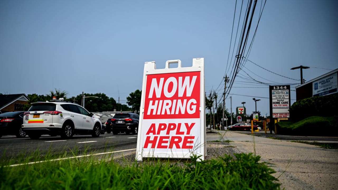 FILE - Photo of a help wanted sign along Middle Country Road in Selden, New York, on July 20, 2021. (Photo by Thomas A. Ferrara/Newsday RM via Getty Images)