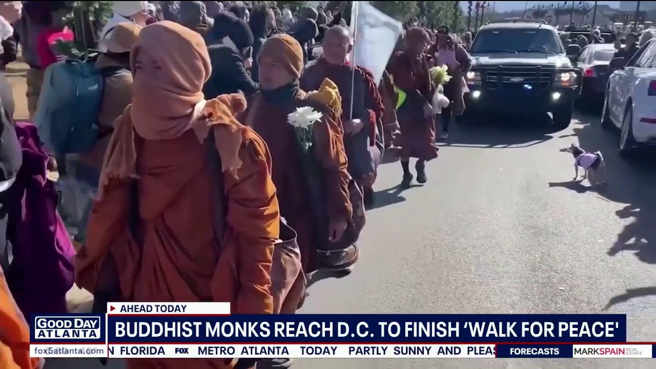 ATLANTA - After 108 days on the road, a group of Buddhist monks in saffron robes is set to step into Washington, D.C., on foot Tuesday, finishing a 2,300-mile Walk for Peace that began in Fort Worth, Texas, and drew crowds across the South and up the East Coast.
