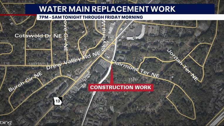 Starting on Monday night, crews will be on Clairmont Road working on replacing a water main.