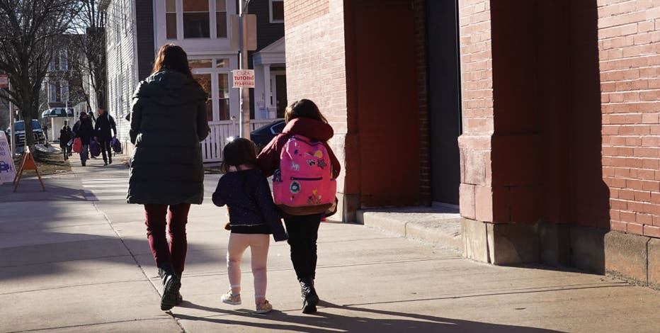 FILE - Parents pick up their children from school on March 1, 2021 in Chicago, Illinois. (Photo by Scott Olson/Getty Images)