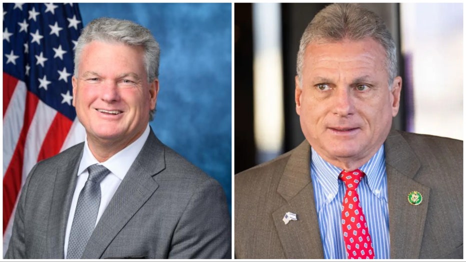 (FILE) Billionaire Rick Jackson (left) filed a federal lawsuit against Lieutenant Governor Burt Jones (right) on February 10, 2026, claiming an "unfair" fundraising advantage in the Republican gubernatorial primary due to Georgia's leadership committ