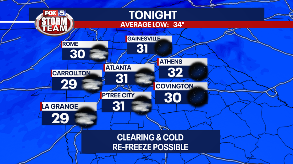No winter weather impacts are expected for metro Atlanta, though the National Weather Service may put some counties in northeast Georgia under a Winter Weather Advisory later today for lesser impacts.