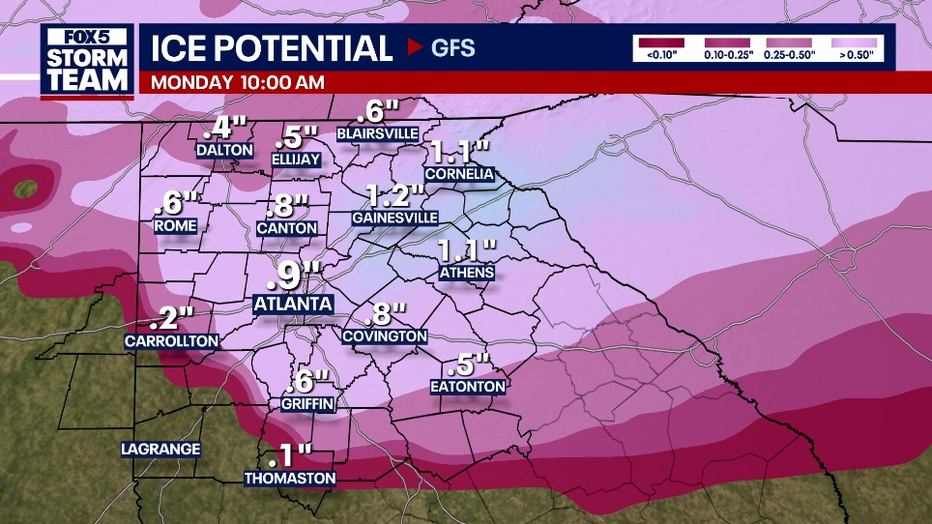 Winter Storm Watch: Possible ice totals for North Georgia