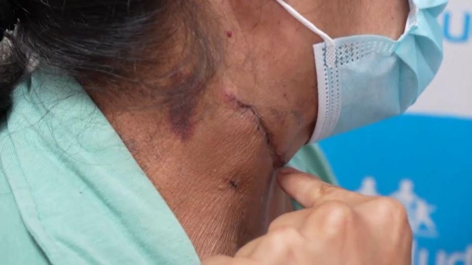 Tello's x-ray images showed the nail protruding into her throat. The woman, who now has a neck scar, has healed since then.