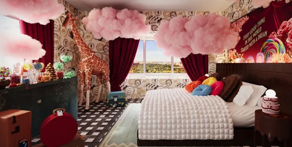 Guests, who will be able to book the rooms on a first-come, first-serve basis, can expect edible amenities, life-sized chocolate confections, Wonka’s candy shop tree, a chocolate bar bed with marshmallows and cotton candy clouds — and more.