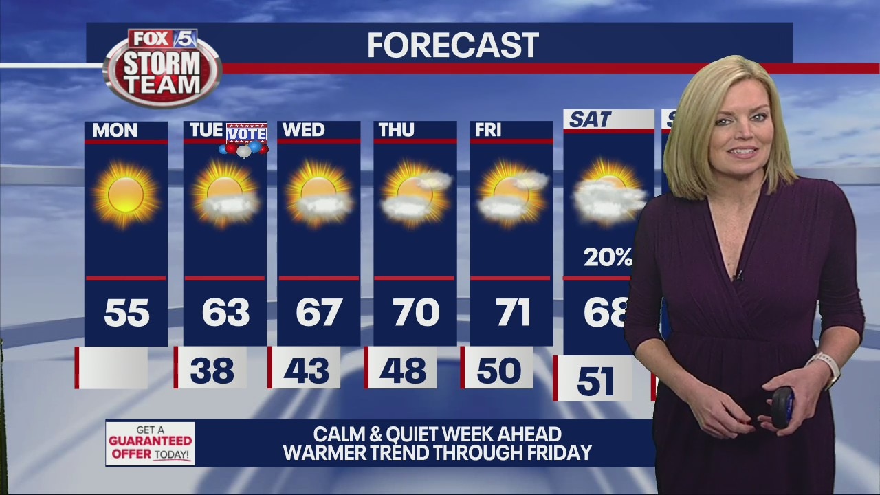 Monday is the coldest day of the week with the morning being chilly and breezy. We've got a big warming trend this week and will rise into the 70s by Thursday and Friday.