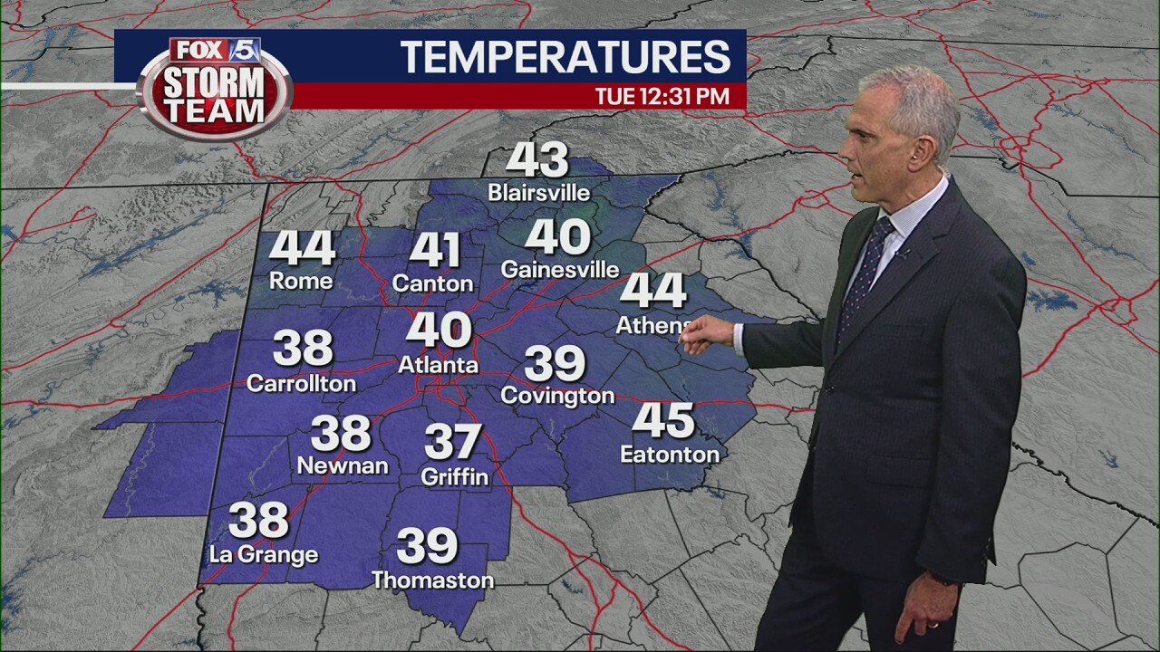 Rain drizzles in parts of metro Atlanta. Warming temperatures are expected around Christmas Day.