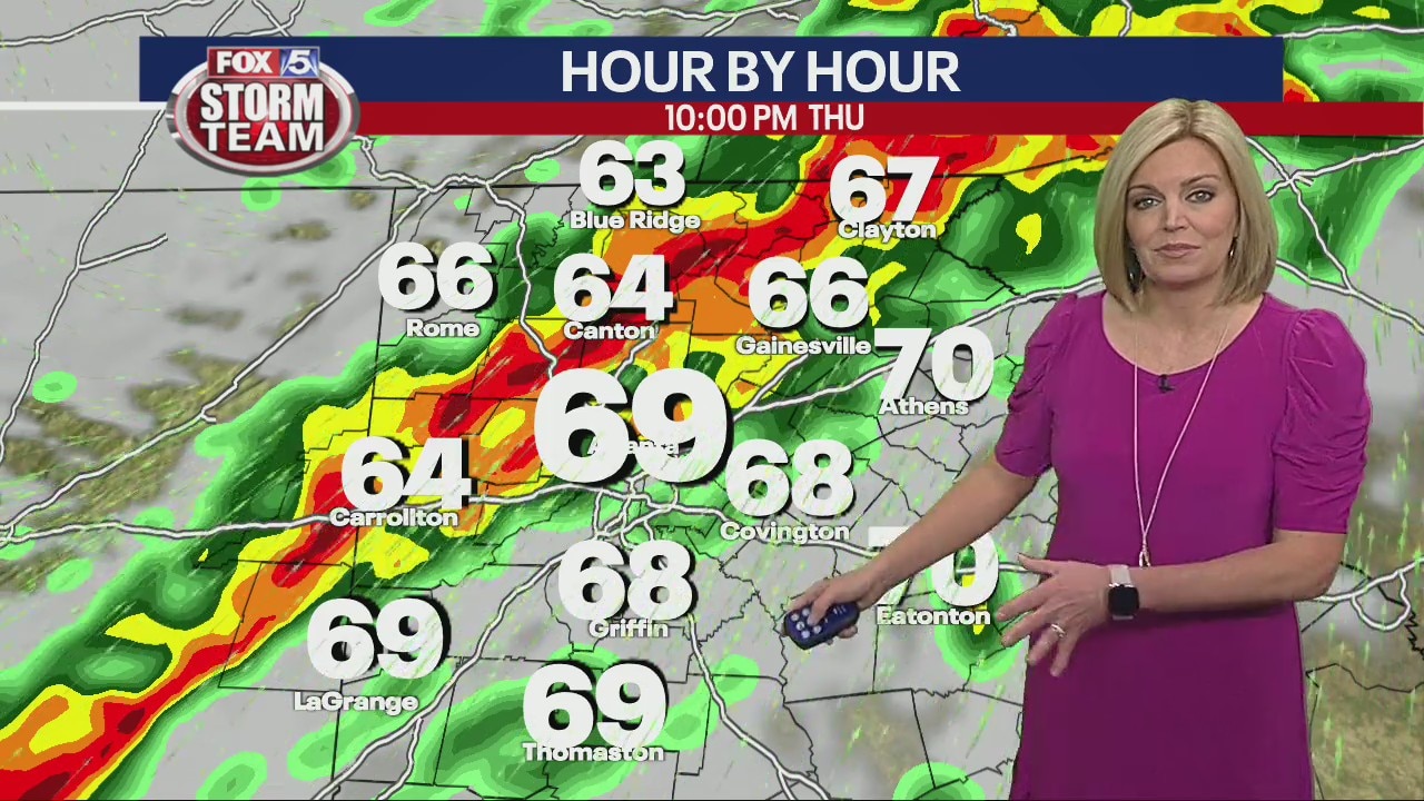The highest risk of heavy rain and possible severe storms will be Thursday night. In the meantime, the weather will be cloudy, windy, and warm for the metro Atlanta area for most of today.