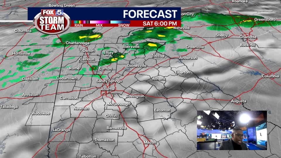 Steady rain showers and cool air will move into North Georgia overnight lasting through Sunday afternoon.