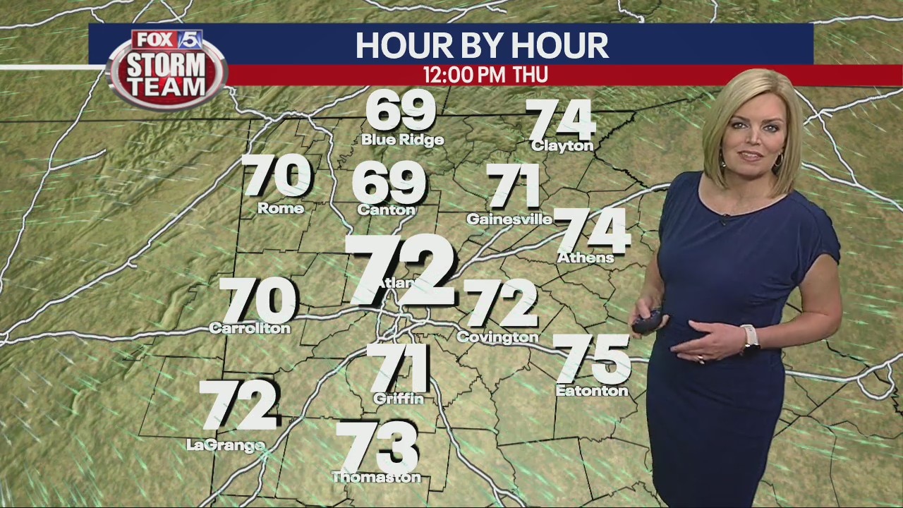Metro Atlanta is reaching near record warmth today with sunshine. We may tie or break a record again by Sunday, but in between, a cold front will result in temperatures leveling off in the mid 70s Friday and Saturday with increased clouds.