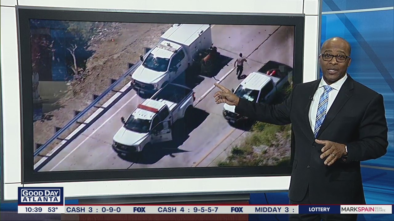 A cow got loose and was zig-zagging between cars on the Los Angeles freeway Wednesday. It was eventually lassoed in a yard and brought to a pen.