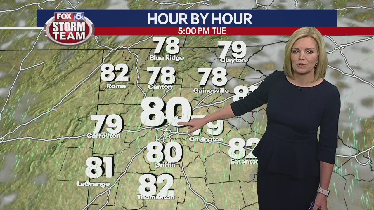 It'll be a warm day today with highs nearing 80. A few showers may scoot across north Georgia later this morning, but after that we'll have bright skies for the afternoon.