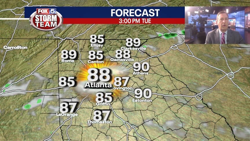 Spotty showers overnight, otherwise cloudy and warm to start Tuesday. Breaks in the clouds on Tuesday with highs again reaching to near 90. Here is the breakdown.