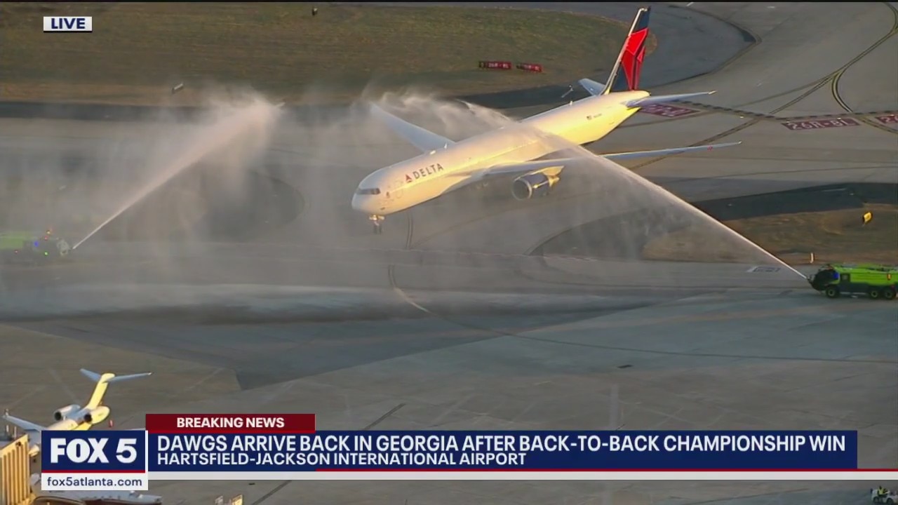 The back-to-back national champions Georgia Bulldogs landed at Hartsfield-Jackson Atlanta International Airport a day after their historic win. The team was greeted with full honors and a water cannon salute.