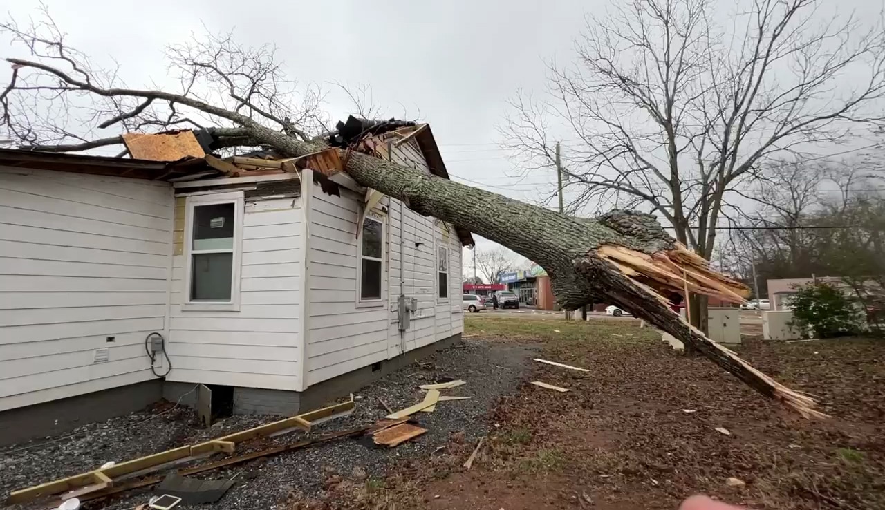 Drones flew over Hobby Lobby and several homes in Griffin damaged by a possible tornadoes. Storms left destruction in their wake on Jan. 12, 2023.