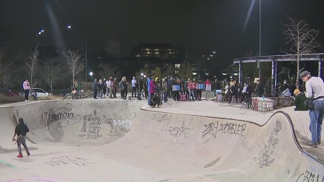People rallied at the Old Fourth Ward skate park Monday night to honor Tyre Nichols who was an avid skateboarder. Protestors demonstrated for Nichols and for Manuel Teran, who was shot and killed in an officer-involved shooting over the planned Atlanta Public Safety Training Center that critics call "Cop City".