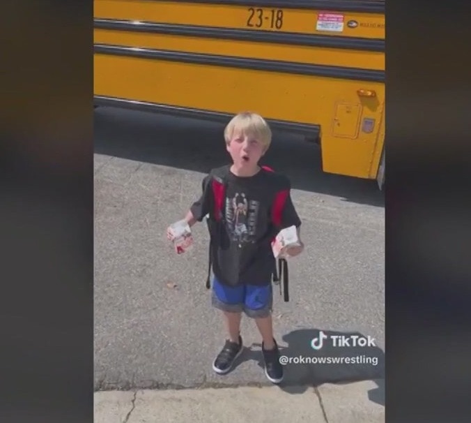 A first grader is going viral for his Stone Cold impersonation on the last day of school.