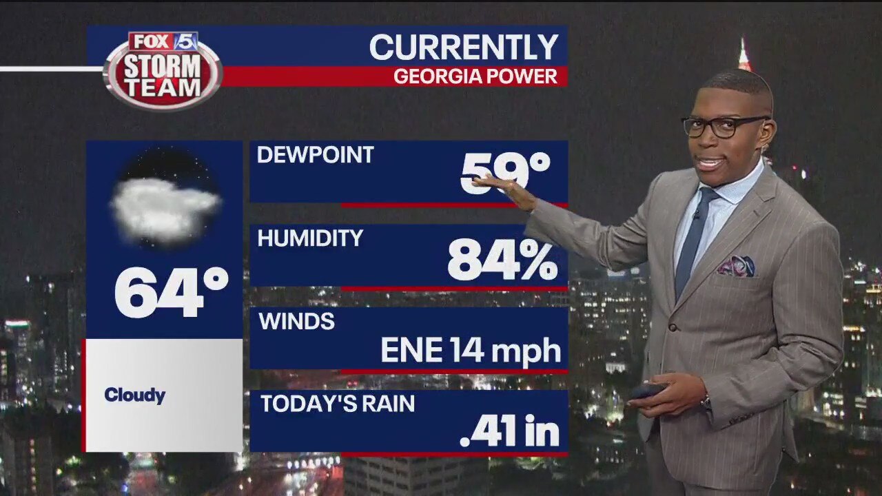 Cloudy and damp conditions persist through Monday evening into Tuesday afternoon. The bulk of the rain will hit west of metro Atlanta Tuesday with some locations possibly getting up to an inch before the day is done.
