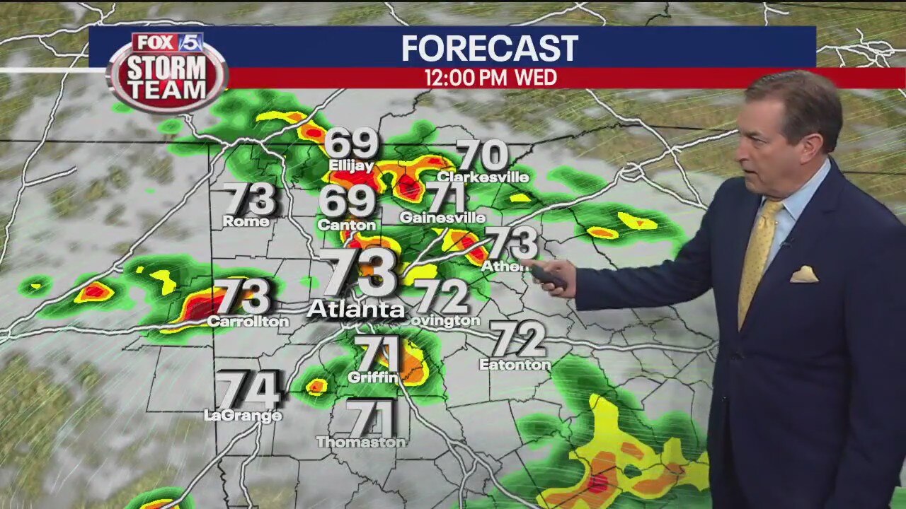 Scattered showers and storms. Expect more summer-like weather by Friday.