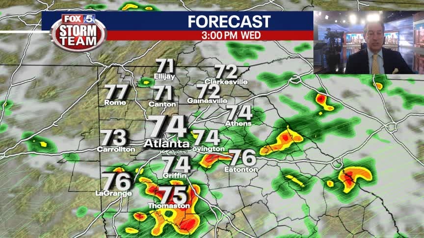 A pleasant evening for North Georgia with some early morning showers developing. More scattered storms expected on Wednesday with a few of the storms on the strong side. Here is the latest.