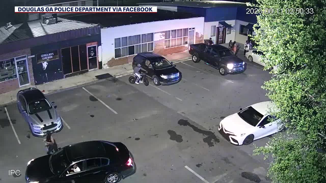 Douglas Police released surveillance video shows people running for cover as shots were fired at the George Washington Carver Shopping Center on June 13, 2023.