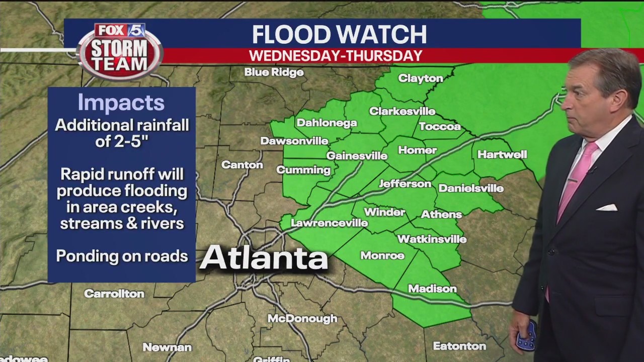 A Flood Watch has been issued for a portion of north Georgia as streams of showers and thunderstorms continue. When will it all end? The FOX 5 Storm Team has the latest.