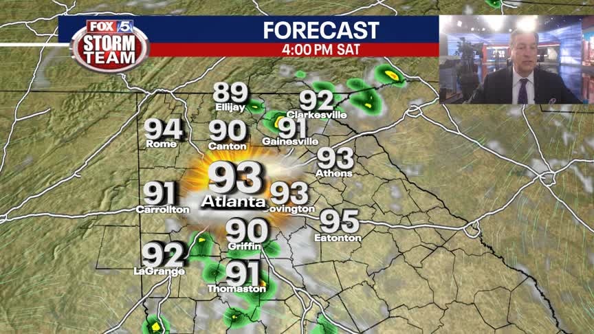 Warm and muggy into Saturday morning with temps in the 70s. Hot by Saturday afternoon with highs well into the 90s, factor in the humidity and temps will feel like 100+. Only a few t-storms expected to develop. Here is the latest.