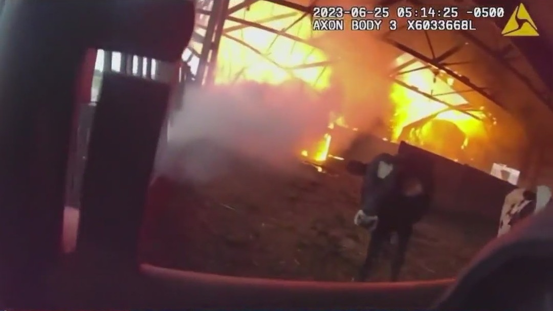 Quick actions by a Wisconsin police officer who saved three cows trapped in a barn during a fire. This is in Sturgeon Bay, north of Green Bay.