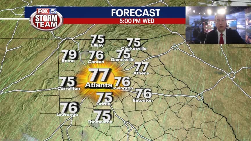 Another real pleasant evening and overnight for North Georgia with temps running a few degrees above the average. Wednesday will be sunny and warm again with highs reaching the low 80s. The record for Atlanta is 83 set back in 1986. Warm again Thursday before big changes arrive by the end of the week. Here is the time line.
