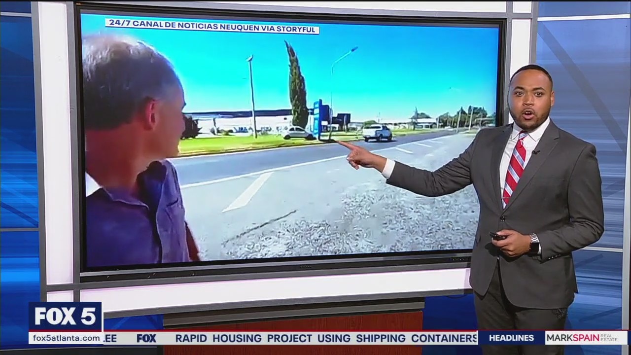 An officials in Argentina was talking about a new speed monitor that was just in stalled when a driver crashed right into the device.