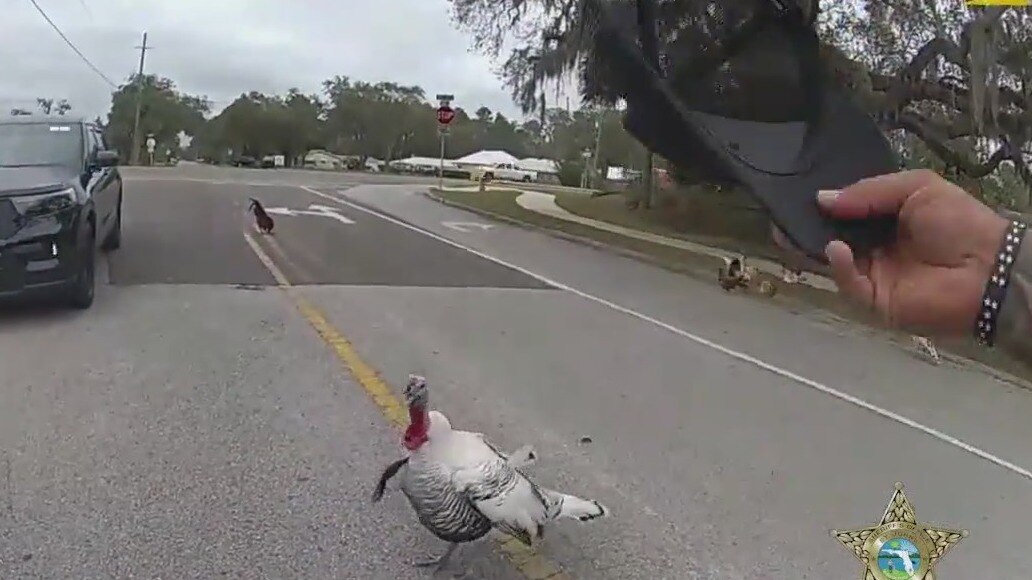 A Florida deputy got a few feathers ruffled when he ran into an aggressive turkey during a traffic stop.