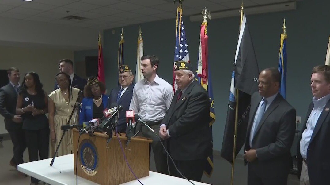 Sen. Jon Ossoff held a news conference this morning in Smyrna, on the dangers of veteran exploitation.
