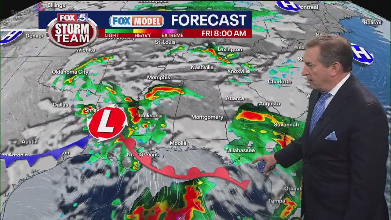 The FOX 5 Storm Team is tracking a front expected to move through Georgia starting on Friday morning which will bring heavy rain, at times, and usher in a breezy weekend. Here's the latest on the timing and intensity.