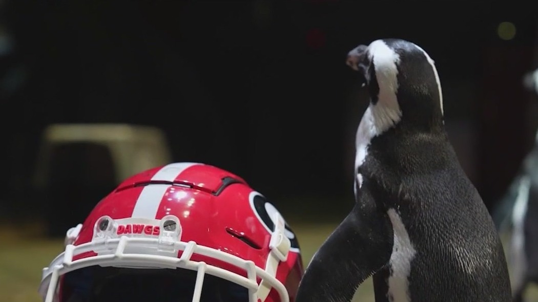 Three playful penguins at the Georgia Aquarium have made their pick for whether Georgia or Clemson will win this weekend's AFLAC Kickoff Game.