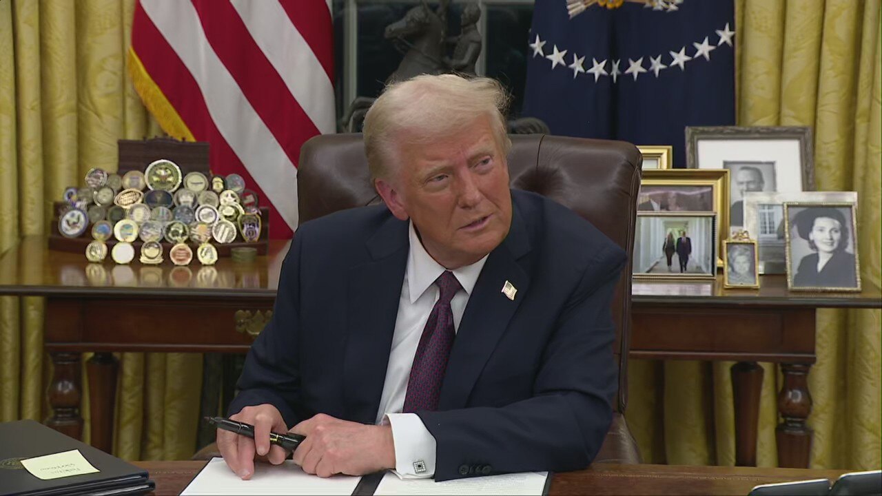 President Donald Trump is signing executive orders from the Oval Office in the White House. When he saw one that mentioned the social media app TikTok, he told the press that TikTok is worthless without a deal with the U.S.