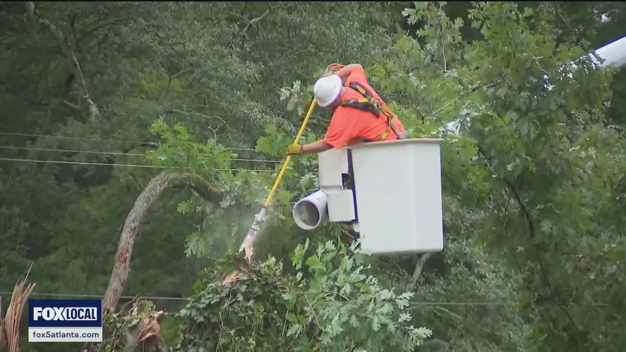 A tree fell in the 200 block of Hemphill School Road in NW Atlanta on Tuesday morning. The tree fell on a car and it blocked the street. It also resulted in a power outage.