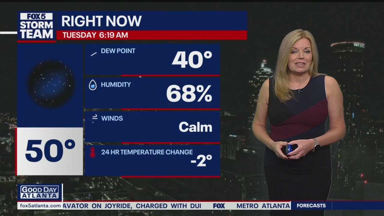 It’s a calm start to Tuesday across North Georgia, but the tropics are anything but quiet. A weak cold front will move in later today, bringing a few scattered showers — mainly to northwest Georgia — before fizzling out farther south and east.