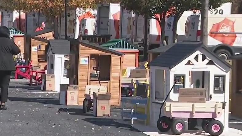 Toys for Tots and Home Depot are ringing in the season by donating dozens of toy homes to children of veterans and service members.