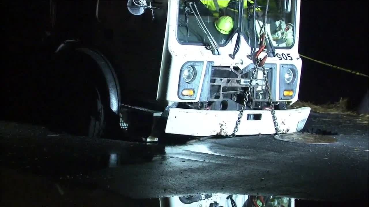 RAW - Garbage truck pulled from sinkhole