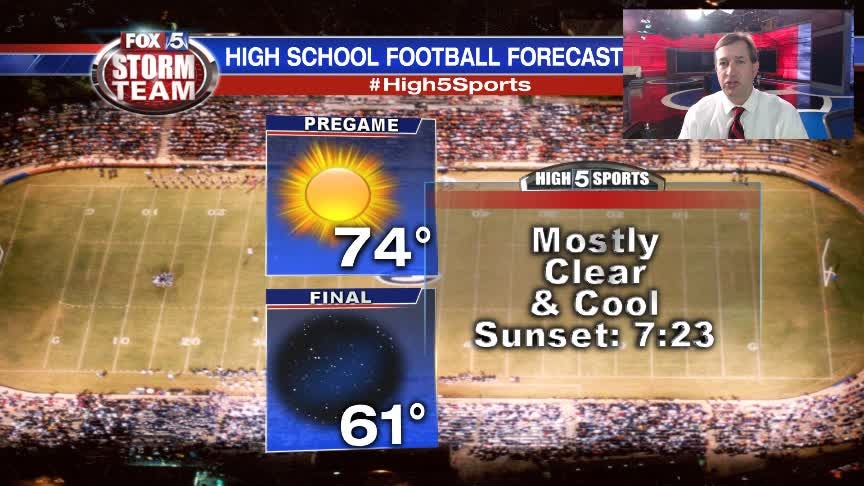 There is a bit of Fall in the air, a perfect evening for High School Football. Here is your forecast for tonight and the college games on Saturday. I'll have the latest on FOX 5 News at 5 and 6p.
