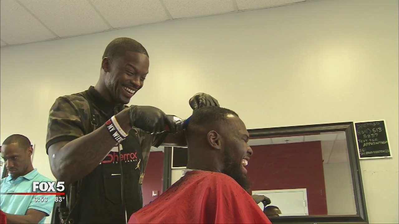 Trying a new style: NFL player working as master barber