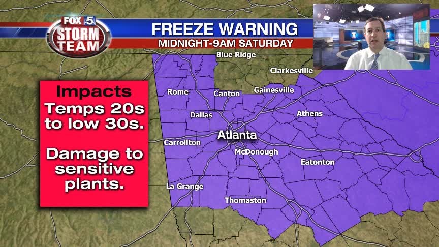 It is going to be cold overnight into Saturday morning. A Freeze Warning will be in effect for most of metro Atlanta. Sunshine will warm us by afternoon. Here is your update: