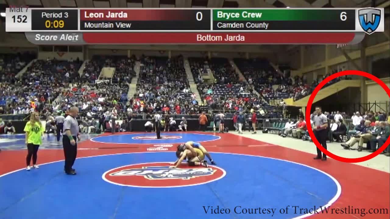 Post-match skirmish following controversial call in wrestling state tournament