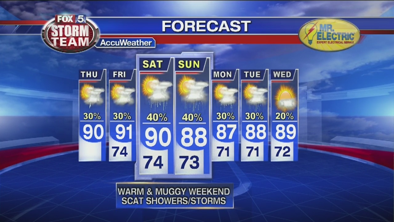 Hit or miss showers and thunderstorms which could produce gusty winds and localized flooding.