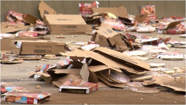 Pizza spills on highway