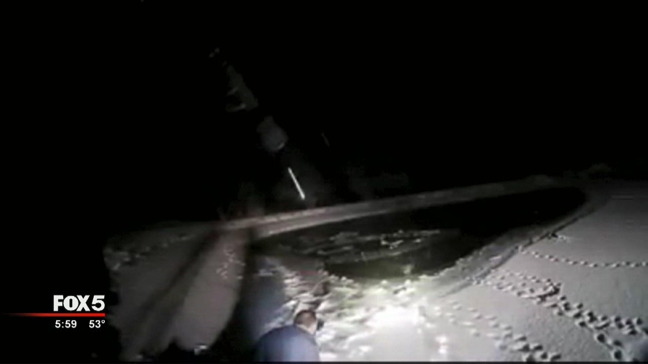 Officer saves dog from frozen pond