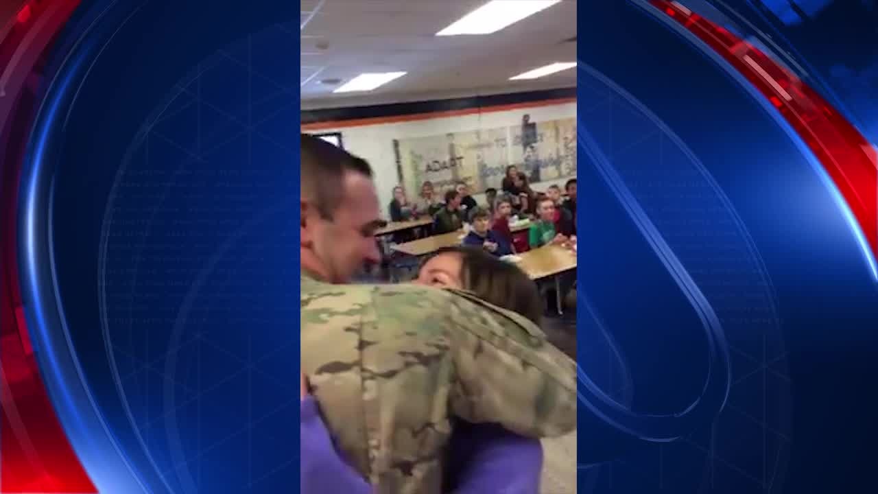 Soldier surprises kids