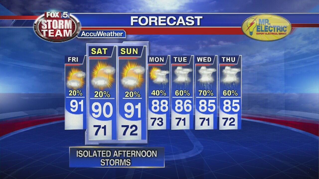 Only a few light showers in extreme north Georgia and staying mainly dry through the weekend.