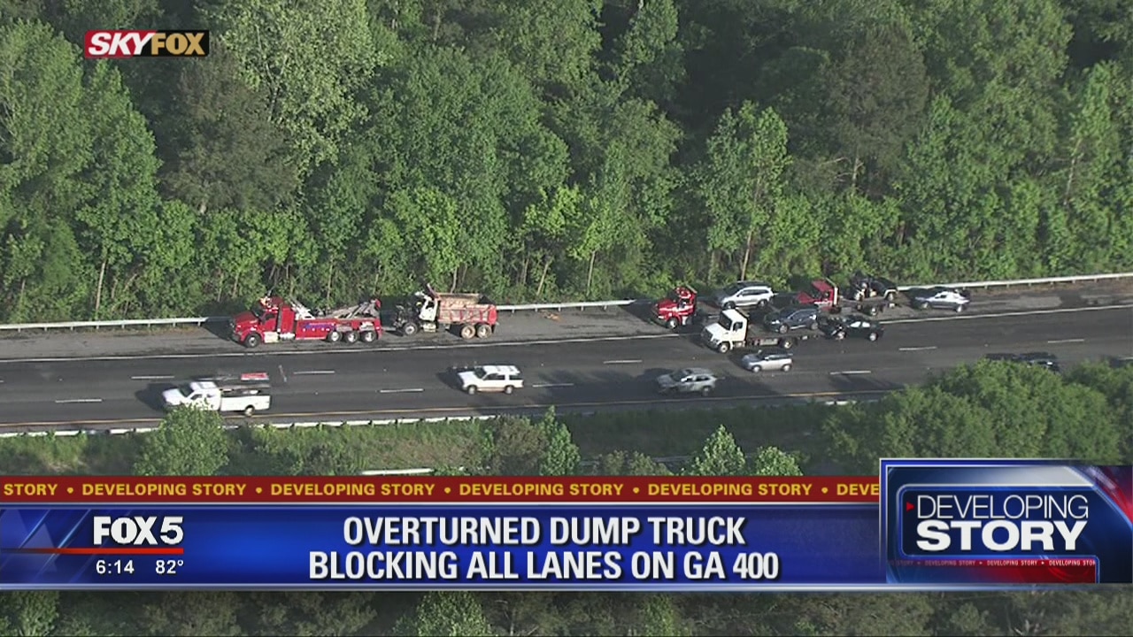 Overturned dump truck blocking all lanes on Georgia 400