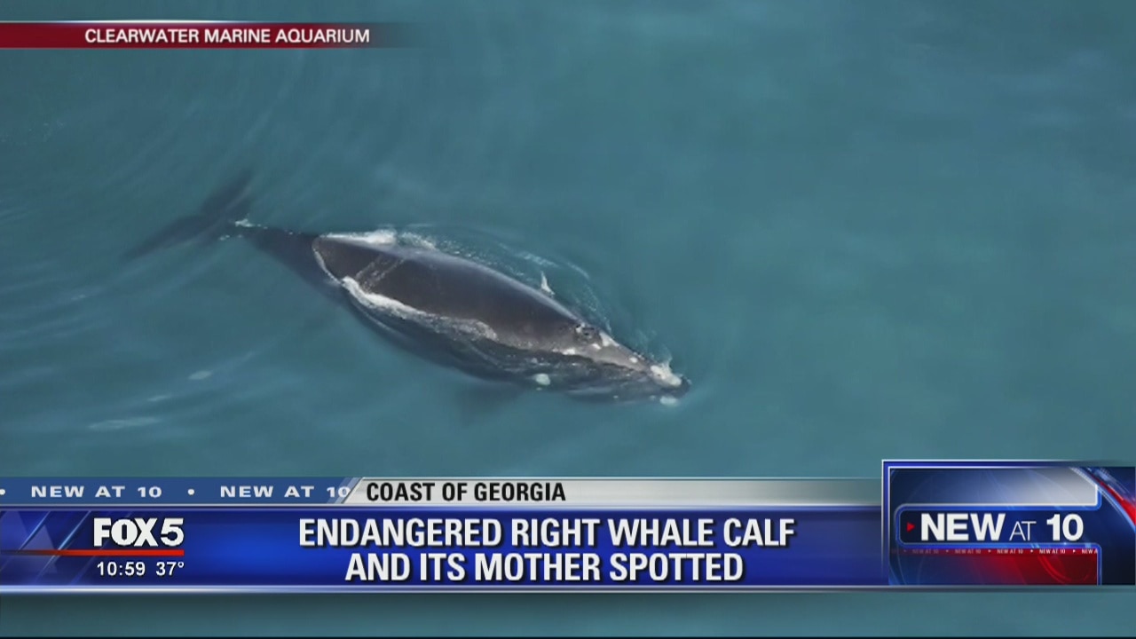 An endangered Right Whale calf and its mother were spotted along the Georgia coast